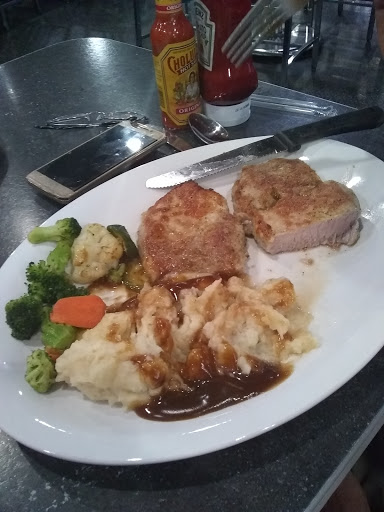 If youre going to Denver Diner to eat, its best to get the breakfast food. They can sling an egg as well as anyone, stick some bacon next to it, and its just fine, really. But if youre feeling adventurous enough to explore the rest of the menu (perhaps the meatloaf, marked as a house specialty on the menu), beware. Even on the Denver scale (where being kicked in the groin for an hour would get you praised in Westword), this is terrible food. The "vegetables" that come as a side are typically some kind of previously-frozen mix (the industrial kind where the carrots are tiny cubes); the meat all has that previously-frozen texture. So do most of the pies. So does some of the staff. But ... as a place, its awfully handy. When Denver isnt loving horrible food, its closing at 7PM, and this is one of the few places around open all night. The people are generally friendly, the booths are comfortable, and the air conditioning works. So, its a good place. Im glad its here. Im grateful for it. Just ... dont come for the food; nobody else does.