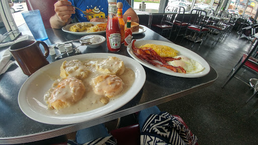 To the people who dont like decor: Its called "Retro" I.E. like the giant Pepsi-Cola bottle cap sign on the wall its supposed to look, and moreover feel, like its "from a time gone by" as my grandfather would say. And it does. From the appearance to the friendly welcome as you come in. From the music to the friendly staff, the Denver Diner pulls off an old school diner wonderfully. And no wonder, as they have been in business for 20 years and the building has been here since the 50s or 60s. The Denver Diner is excellent. If you dont like diners, dont eat here. Eat here and want to complain about it not being a post modern yuppie Starbucks wannabe? Get some cookie dough, a bucket of ice cream, watch a mopey movie and shut up. Go for the food. Go for the experience. Go for the nostalgia. Go because you just got out of the club and nothing else is open. Come back because, everything else aside, you enjoyed it.