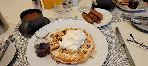 Our server needed to clear on how our food was being served and what was being served. I am allergic to a handful of fruits and nuts, and when I sent my salad back the first time, they brought a salad back with a different fruit I was allergic to; they made a substitution without asking what I would like. Same with dessert - they brought me a substitution I was allergic to, but by that time, I just left it alone and let everyone else around me enjoy the dessert. Ive never encountered so many problems with my allergies.