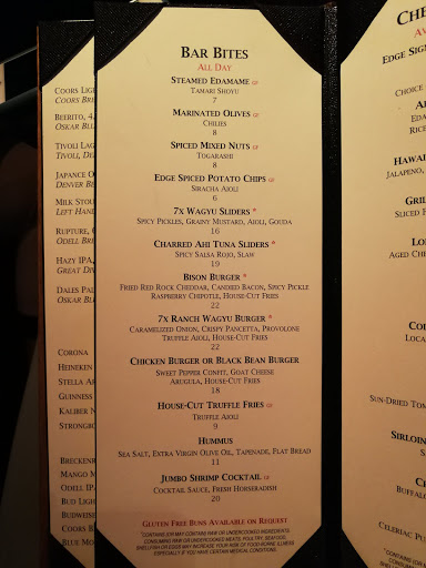 Very mediocre. Probably the most overrated steakhouse in Denver. Really nothing about this place makes it worth the price. Average food, inattentive servers, and a feeble attempt at creating a trendy environment conspire to make Edge a dud. I guess they put it in the 4 Seasons to put it in direct competition to Elways downtown location? But Edge cant hold a candle to Elways. Save yourself the heartache and eat elsewhere, Edge is blah.