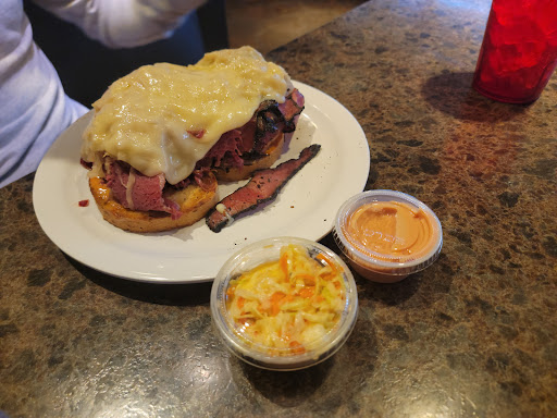 Saturday April 9th lunchtime. I found a piece of plastic wrap (about 1 inch by 1 inch) in my cole slaw after repeated chewing alerted me to it being something other than cabbage. I dont know how much I swallowed. Having no desire to make a scene I calmly reported this to the waiter who promptly called the "General Manager" named Mel over to the table. Mel made what seemed like a obligatory apology at best (the people at the next table overheard and shared this with me) and, trying to keep the mood light, I asked for another side of cole slaw without the plastic wrap. Now I certainly didnt expect the meal to be comped but at least some offer of something would have been reasonable even if that had been just a heartfelt apology. After we paid the full bill I asked Mel "how could you not even offer at least some adjustment?" to which he actually responded that "things happen" and "it is the policy of the owner". So, unless Mel was not telling the truth, this is the policy of the owner, Al Belsky, to not stand behind serving safe food and that really concerns me and should concern anyone considering eating at this restaurant. There certainly are other good New York-style deli options in the Denver area. I really dont know how much of the plastic wrap I ate but it is fairly disgusting to think about it. Needless to say I will never eat at this restaurant again. I now better understand another reviewers statement of "kind of dirty".