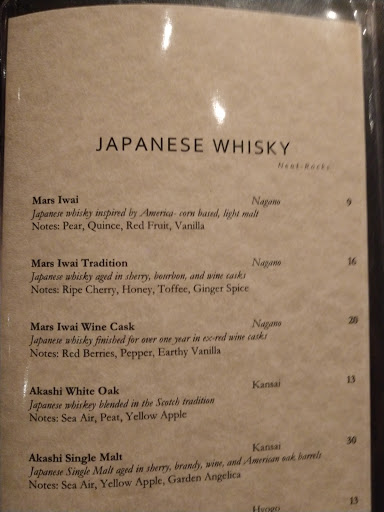 Ill admit, Im not an authority on unique japanese-asian fusion cuisine, so take the review with some salt. Regardless it was very good, but expected as not exactly a budget choice. I found the cuts of fish we had to be very good (tuna, snapper, yellow tail, salmon) and overall the dishes (we had 7 tapas) to be uniquely flavorful and wanting for nought. I chose a malbec to go with it. I cannot remember the exact vintage but it was intriguing and was not the common tone of the malbecs Ive had.