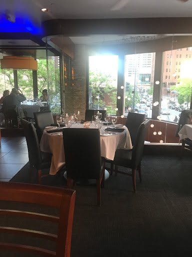 Wanted a nice upscale downtown restaurant to celebrate our anniversary. My fault for not making a reservation for an early Tuesday night - so we decided to sit in the bar lounge than wait for the upstairs. The atmosphere was a bit dirty, noisy, TV going, 95% sausage party with one prostitute (my judgement) at the bar, wait staff buzzing by every minute saying "corner!" Aside from my table mistake, our server was very rude (even to my sweet wife) to start and clearly did not want us to be at her table. We almost left after she asked for our IDs condescendingly. But $215 later, the bleu crusted filet and rib eye with scampi were not terrible, the Ahi Tartar appetizer tasted like any low to average chain restaurant and the $12 tater tots could have come from McDonalds as well as the salad. The minor saving grace was a free slice of chocolate cake after we said for the 2nd time it was a special night - our anniversary. Skipping the free $11 cake would have saved the $25 parking ticket in hindsight. That was also my fault. I dont think well be back to this one, even though I can guarantee the service would be better.