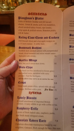 Many negative reviews on here, but mine shall not be one of them. Upon first impression, the outside is very British. Walking up the short steps to receive the food I had ordered for lunch, I entered the door into a quaint, quiet, but pleasing atmosphere. It was then that I approached the counter. I wasnt there long before the barkeep approached and asked if I was "The one who ordered the lamb stew." I said cheerily, yes, and he said it wasnt quite ready yet, and I was early. He said, "Here have a water, hydration is important, as you know out there on your bike." When he went behind into the kitchen was when I noticed the absolutely astounding array of liquor alone, then I noticed the majority of it was all Single Malt Scotch!!!! Oh how excited I was to see Balvenie 12,14,15,17 Yr old, and Carribbean cask, and that is just one brand!! Next, the food. It came in a white bag, and I paid, tipped, and left (the barkeep almost forgot to charge me lol). Arriving back at my work desk, I dug in. The soup came in a solo coffee cup (large) with a lid, a traditional hard large biscuit, and salad with Bleu Cheese (I chose that). Mannnn, even the dressing was good!! The lamb stew I ordered was super traditional, thick meat and potatoes - Awesome. Unfortunately this was just a lunch experience, and thats the reason for my four stars. I will soon go back to try some excellent whiskey, and in-house conditioned traditional cask-style ale! If you are looking for a slightly more quiet, ma-and-pa style place, with excellent and unique selection, this is just the spot.