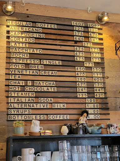 I share similar thoughts as other reviewers. Cute and quaint coffee shop with a wonderful atmosphere. The barista recommended the hazelnut latte as they make all of their own syrups - it did not disappoint! I think I will try the chai next time as that is also made in-house. Only tip is to maybe vet the music as there was one song playing that used a curse word (several times) starting with the letter f... may not be appropriate.. especially if there are little ones present.