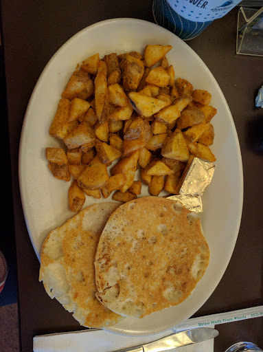 This restaurant has two sections- one section is small, dimly lit, and cave-like with no windows, plastic tables, and trash on the floor. The other section is clean, with windows and attractive wooden furniture. The two sides are separated by a solid wall. The attractive side is always mostly empty, and the waitstaff seats everyone on the dirty side unless they ask to be seated elsewhere. If you want a nice burger and a good view of the mountains just go to Timberline.