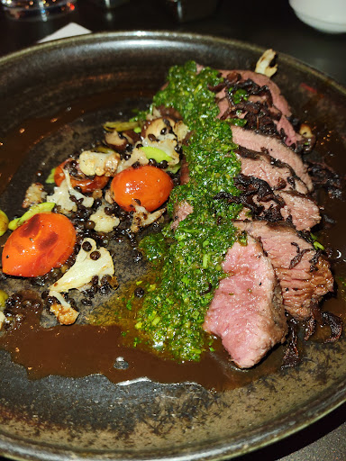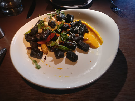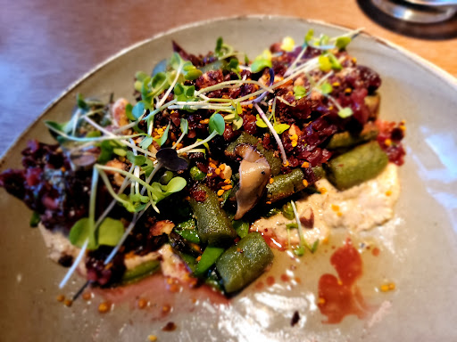 Just got back from our fourth visit to Root Down and it was better than ever. This was already my favorite restaurant but theyd really outdone themselves tonight. First, the food is phenomenal. Flavors unlike anything else Ive had and by a mile more delicious than anything else in this state. They just know how to combine flavors like nobody else. YUMMY. Second, the food is locally sourced and largely organic. This is wonderful, because I wont eat GMO soy, and as a vegetarian, that severely restricts my already limited options (if your soy is not organic, you can safely assume its GMO). We had the arepas and some kind of corn risotto, both of which were so fantastic that it would be almost an insult to call them just delicious. Between the four of us, I think we had one each of every main dish. The seed encrusted tofu was excellent but not as good as the country fried tofu they had over the winter. Everyone loved their food and it all looked amazing. My father in law could not stop raving about the salmon and how perfectly cooked it was. Tonight, one of our drinks took unusually long to arrive. We didnt complain, but the waitress comped it anyway. Shortly after we arrived, a booth opened up nearby, and we asked if we could switch. It was reserved, but they were so overly apologetic for not allowing us to move they gave us a free dessert! This was so unexpected and completely unnecessary. When we were done, a manager came by to apologize again for not allowing us to move. (It was NO BIG DEAL!) But it was my in-laws first visit and they said they wanted us to leave with a good impression, which we would have regardless. We dropped exactly $200 including a well-deserved generous tip on a dinner for 4 with drinks and appetizers, and it was worth every penny. The service was beyond excellent, and the food - well, there are no words to describe the explosion of the perfectly matched collection of flavors that is every Root Down dish. I love this restaurant.