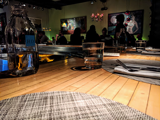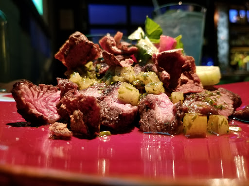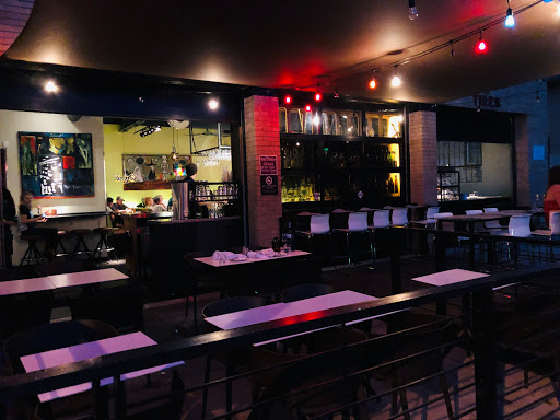 We had some tickets to a show at the nearby Bug Theatre and came across Root Down when we were looking for a place to eat before. I would say the place is kind of hard to find, but that is only if youre looking for a restaurant sign and/or a building that looks like a restaurant. There is no sign (that I could find) and the building is an old gas/service station. The address however is prominent, so its not that hard to find. There is no parking lot, only on street parking in a busy neighborhood which makes parking somewhat of a challenge. Once you get past all this though Root Down is extremely good. We didnt have reservations for the Saturday night, but we were able to get a table in the bar with no effort. The bar and restaurant were very busy (90 min wait for the restaurant, nearly every bar table and bar full). We shared the 4 onion soup which could have used a little more cheese for my liking, but still was very good. I ordered the Buffalo Sliders and Ang ordered the Veggie Burger sliders. I was very impressed with both. The service and vibe here were both very good. Our waiter answered all our questions and made sure we were taken care of. I found it a bit interesting that the restaurant is in an old garage, but once inside, even in the service bays where the bar is, it had a very hip/trendy vibe. Pricing is a little bit high, but it looked like all the main dishes had a smaller portion available. Drinks were priced about average when compared to similar restaurants and were not watered down like Ive experienced at other places.