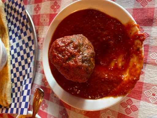 I enjoyed a $7 meatball from the appetizer menu that was OUTSTANDING and filling. Melted cheese atop the ball and it was swimming in tasty red sauce. Wow. This thing is a crowd-pleaser. My hottie waitress, Leah, tells me the place has been open for 51 years. Cool. Retro red and white table cloths set the mood. I love it from end to end, but it needs a brand upgrade. My caprese salad was delish, but I had to ask for more Balsamic. Fuggedaboutit. Sinatra playing whilst I ate. Score! Beer and wine only.