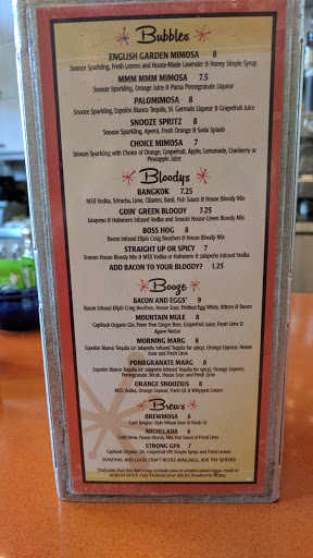 Snooze use to be my favorite breafast place. Ive been there quite a few times. Normally have no problem waiting, because its been so good. This last time I was there we waited for 2 hours. As we waited for our table, I saw a few people check in and get seated with out a wait. We were finally seated and ordered right away. The couple next to us were seated about 5 to 7 min. after we were, they received their food first, finished, and we were still waiting for our food. There were 3 in our party 2 in theres. My duughters order was wrong. I have an allergy to onion, told the waitress that and I could taste it in my potatoes, I will have a migraine for atleast 3 days. I wrote this review as the patrons next to is were finishing up their meal. Not happy, and may not go back!!
