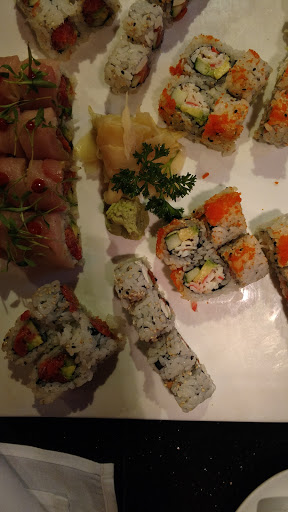 A small order of Sushi took MUCh longer than expected Food was very well made and service was pleasant but kinda short with the attention. Have had lunch and dinner here many different times always happy with food. Not the easiest to see but a fun little spot. Yummy asian fusion.