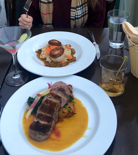 First visit. Our anniversary celebration. Loved everything about it. The wife had the grilled pork tenderloin. Cooked pink. Moist tender and flavourful just how we like it. I had the wild scallops with mushroom and artichoke risotto. Melted in your mouth. Waitress was great. Wine selection was tremendous. Never felt rushed. Will go again. Need to think about a crusted port rather than tawny.