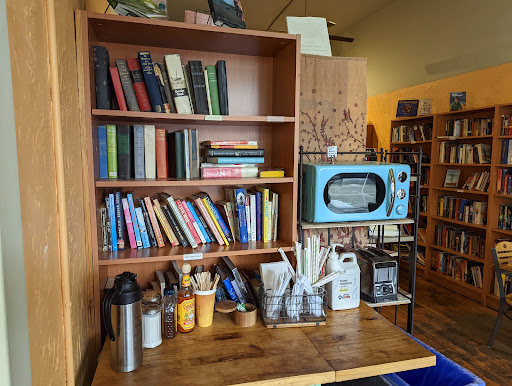 I love the coffee shop / used book store combo. And despite other reviewers comments otherwise, Ive found the service to be nothing short of friendly. Its a little stuffy inside in the summer, else Id give it 5-stars.