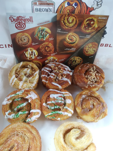 I LOVE Duffey Rolls! I wish they were a bit cheaper but the higher cost probably translates to a smaller waistline :) Ive always had good service from people that seem to be happy working there and I love the rolls. I have not tried many of their other offerings so my review focuses on their specialty - the cinnamon rolls - which as I say, are outstanding. The location is nothing special being in the middle of a strip mall parking lot but theyve done the best they can with what they have to work with. It doesnt feel as cozy as a bookstore, but its comfortable. I always get a dozen of these when I have relatives in town visiting and they are always a hit.