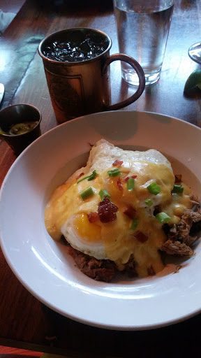 I have been here twice and both experiences were great. The service is laid-back and casual, which is perfect for the space, and the food is excellent! The chicken and waffles were a revelation. The chicken was golden brown and crispy on the outside, perfectly juicy and tender on the inside; the croissant waffles were crispy along the edges and had a lovely, layered softness; and the venison gravy which accompanied the entree was seasoned perfectly, lending a deep, satisfactory savoriness that complemented the dish and tied it all together. Ive only had mimosas while dining here (and, trust me, theres no skimping on the bubbly), but I caught a glimpse of some local craft beer handles that definitely piqued my interest. I will absolutely be going back to The Goods... and bringing as many friends as I can!