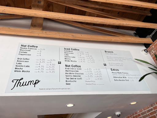 A good friend of mine had exclaimed how great Thump was and I HAD to go there when I visited, so my girlfriend and I did! We were greeted by a very friendly gentleman and proceeded to make our order and ordered specifically an iced Americano. One of the clerks asked if we wanted a cold brew so I had to inquire about their cold brew preparation. Im not a fan of cold brew because it lacks acidity due to the means its extracted. I asked if it was hot bloomed because its what I prefer, and the barista mentioned that its cold brew and hot bloom isnt cold brew. Fine. We were given a sample, which I greatly appreciate, but I stuck with my initial choice. I also ordered a single origin espresso (delicious) and an iced almond milk mocha. My initial beverage was prepared with regular dairy so it had to be remade, which I dont mind. What I did mind was some of the clerks talking about how they didnt like mochas because it tastes like chocolate milk. Yep. It does. Its delicious and as a customer I enjoy it. All in all the coffee was decent but the egos were sub-par.