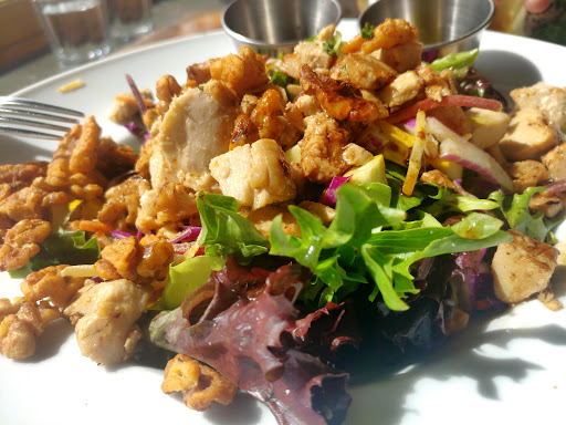 While their food is over priced it is good. :-) Way to ruin a first date Vert!!!! If you have a service animal be prepared for their employeed to interrogate you on proof of your disability and your service animals registration. After being told that my service animal would be fine to walk through the restaurant so we could sit where there was more shade, on the rear patio, upon reaching the table I was approached by two separate female employees demanding to see proof of my disability and/or proof that my dog was a service animal. Still they said I will have to sit up front and they were getting their manager. To avoid making a scene we sat out front in the sun. The manager never came to speak with me.
