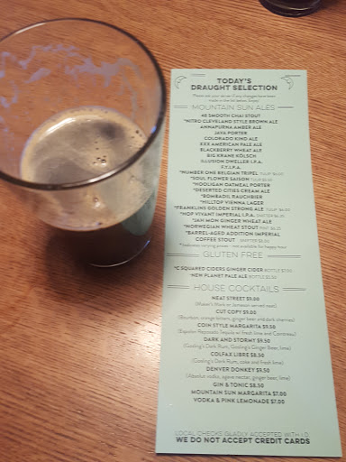 I have been going to the Mountain Sun, Southern Sun, and Vine St. for years now and every time I go I have a great experience. I had to write a negative review for another restaurant in Boulder which used to be chill, so I thought I better write a positive review too. With how popular this family of restaurants have become I am so impressed they have kept the same quality of food, beer, and service. Sure their restaurants are more crowded than they used to be, but they still always treat people with respect. That means so much. Keep up the good work yall!