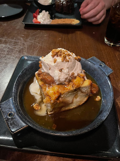 Great choice of restaurant for dinner! Good menu options for both small plates and large. We decided to split a salad (kale ceasar salad), short rib pasta small plate, and the shrimp and grits small plate. The two small plates were on point and delicious! Kale ceasar could have been messages a little to reduce its esrthiness, but otherwise great dressing. For dessert we got the bread pudding, which shared, and was delicious.