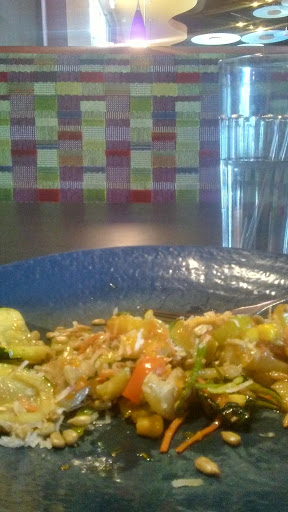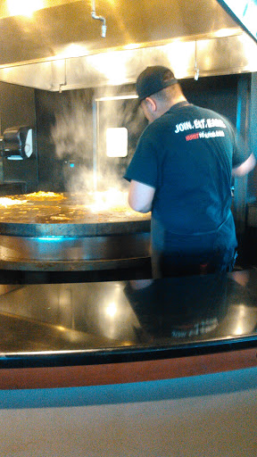 First off, the server we had was very attentive. But all he was really responsible for was bringing drinks. The rest of the meal was on us. The premise of this restaurant is to go up to a buffet style food bar and put raw foods in a bowl, cover it in your choice of sauce and then take it the cook who dumps the bowl on a flat top cooker and flips it around for a few minutes while it cooks. Then, using the same utensils that hes been using for ALL the meals on the cook top, he scoops your meal into a plate and you return to your seat. Now, Im not too concerned with the raw food aspect, but it is present. Raw chicken starts off the food selection, lined up next to raw beef and raw pork. Then came the raw sea food. Granted, the heat does cook off most of the badies, but its still a little strange. Next comes the cost. It is not cheap. You would think it would be a little cheaper seeing you are going up and all but cooking the meal yourself. For lunch, mind you, my family of three spent $43 bucks with just iced tea for a side beverage and no appetizers or deserts. The food was OK. Not bad - not outstanding, but just OK. The check came with the usual suggested 18% and 20% tip amounts already calculated. For fetching my Iced Tea? All in all, not a good idea in my book. Perhaps they reduced the price of their lunch plate a couple bucks, and seeing youre already nearly serving yourself, why not just put a drink station next to the food and eliminate the need to ask for a tip.