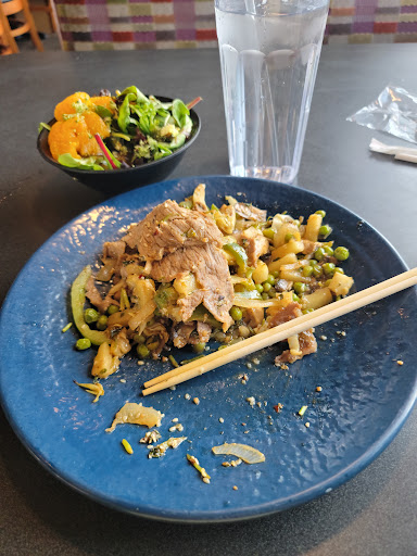 Typical Mongolian Grill establishment. I ordered some appetizers, it was obvious these were frozen and didnt taste all that great. The sauce was tasty, but the small bowl was barely filled. I left over half the appetizer and the waitress never asked me if something was wrong. The meat was frozen in the traditional way. The help team seemed to be "tending" the meat station. The veggies were fresh enough. Then the sauces table. It was a mess. And it wasnt obvious that one should dump the sauce in the bowl on top of the meat and veggies. I am used to having a separate bowl for the sauce. The chefs simply dumped the single bowl on the scolding hot circle stone stove and without much fanfare proceeded to cook my meal well. The food was hot, served quickly and because I had guessed at the secret 5 ladles of sauce combo - just spicy enough and tangy enough. Lastly, the place has the Coke Freestyle. The waitress brings the drink, which sort of takes the fun out of the Freestyle experience. Overall- very average experience.