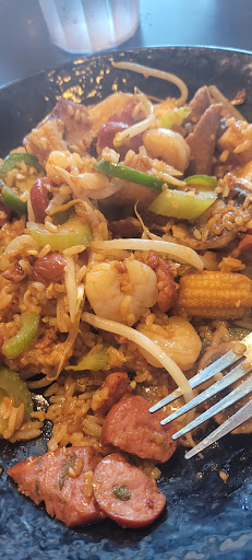 This Mongolian grill is part of a franchise chain, but the experience is conceptually appealing. The buffet-style, build-your-own Mongolian plate is a little unsettling to some (raw meats and ladles sort of make you think of salmonella and E. coli!), but the chefs are fun and the ambiance is entertaining. The smores dessert looks like fun (a little flame is provided for you to roast marshmallows on spigots), but we didnt try it. I enjoyed a nice meal with excellent company. And ultimately, its not where, but who youre with that truly matters.