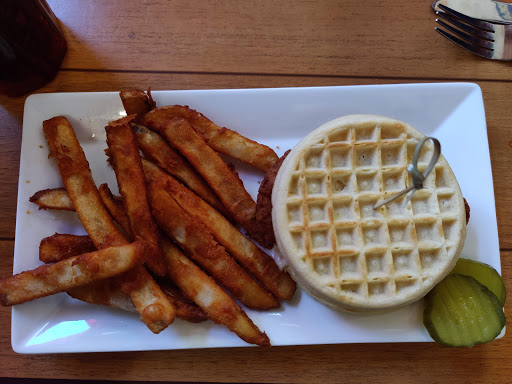No. Just no. I hate leaving bad reviews for local establishments but I just can not tell others about my bad experience. My family and I came here on a Sudnay afternoon while on vacation. It had decent reviews and it had a pretty fool proof menu. It took 15 minutes to get our drinks. Which they didnt have root beer anymore. No big deal but then We got 2 "giant" soft pretzels. It was so hard and the cheese was so cold I sent it back. It tasted freezer burnt and was a normal pretzel from a box. The one had BBQ sauce on the plate the waiter said it was grease... It was baked. The food came out 40 minutes later. Our medium burger was 100% well done and the mushrooms were obviously from a can. I know its not a fancy place but it was not good. Another 20 minutes sitting and waiting we had to find our waiter and ask for the check.. 15 minutes later he finally came back. I was so angry we wasted our money on such terrible food and service. I told a few ppl in line waiting they should go elsewhere. I suggest you do the same as well. Maybe the good reviews are ppl that came in after they visited the cannibas shop...