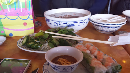 I come here once a week for my Vietnamese noodles or rice dish fix. Definitely the cleanest pho place in town. Its bright and the atmosphere is always nice. They have remodeled with a modern look. Service is good and the food always hits the spot.