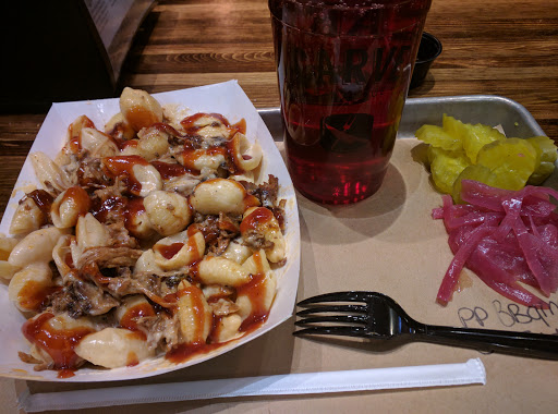 Im a big fan of barbecue, and the meat is fantastic and tender, but as a dine in experience it leaves a lot to be desired (out of bbq) For the life of me, i couldnt find a sauce they offered that i actually liked, mild has WAY to much vinegar, spicy hot gets drowned out by peppers, and the cherry is well, cherry barbecue sauce. If you like a "regular" barbecue sauce them maybe bring your own sauce or take it home. The atmosphere and staff were fantastic, but being unable to get a good sauce at a barbecue place really killed it for me. Value - Two pulled pork sandwiches, a drink, and a mac n cheese was 20$