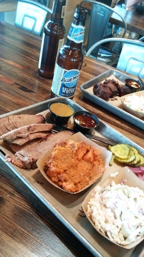 The meats are all sustainably raised -ethically. I like that big time because you are what you eat... and anyone knows the first thing with bbq - you gotta start with good meat. The place is a great concept. I really like the fast casual, open seating, highly adaptable/flexible venue. The bbq has just the right amount of smokiness- not over powering, not over salted, not over seasoned. My personal favorite so far is the burnt ends or the RIBS. Those ribs are to die for. Theyre dry rubbed, not corn syrup sauced. All the sauces are made in house. The sides are all made fresh. A huge selection of pickled veggies just like they do in texas. This place is legit. I also love the beer selections. The management is tune with what people want, what they like, what they wish they had.... etc. So I have confidence that this establishment is here to stay and grow. Mustard sauce is tied for my favorite with the spicy.... surprising how tasty that mustard sauce is on so many different things. Ive covered a lot of bases at this place- Im pretty sure Ive eaten there at least 5 times since they opened. Ill be going back often. The salad and burnt ends is my go-to. Perfect lunch.