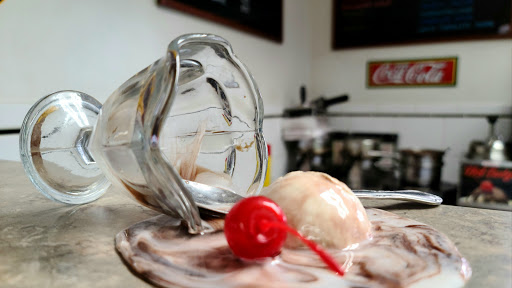 Quaint little ice cream parlour seeing up Dryers and Blue Bunny ice cream