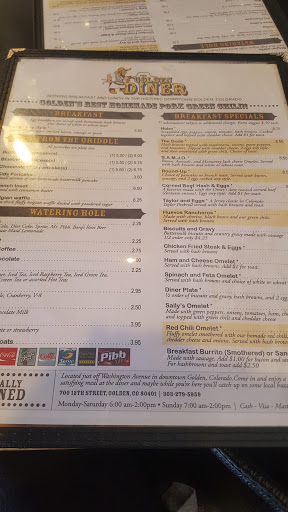 I really wanted to like this place. Its a lowkey, clean diner with a friendly atmosphere, and it is not super expensive like so many other places in Golden. But we disliked the food! I had "huevos rancheros". Two flour tortillas. In between are some black beans straight out of the can, and browned ground beef without any flavoring. Huh? The eggs were fine, but the sauce.... I wont hold it against them that this was no ranchera sauce. Typically in Colorado you get green chilli with your huevos rancheros. I love colorado green chilli! But this was no green chilli either. It was a greenish black pepper sauce?! It kind of tasted as if a German from the 19th century read a 2-sentence description of green chilli, and tried to replicate it. Weird! They should either take mexican food off the menu or hire somebody who knows and likes mexican cooking. The current cook does neither. Wife had biscuits and gravy. They were okay, just not all that great. But she disliked that the creme for the coffee came in those little plastic single-serve cups. She hates plastic waste, and that the preservatives in those cups are very high in sodium. In conclusion, we wont be back. So sorry to leave a bad review!