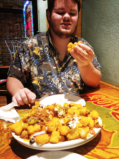 I am not sure how this place got 3.8 stars. It was a terrible experience! This place was recommended by the tour bus driver at Coors Brewery. It got 3.8 stars, so we thought we would give it a try. I am giving it the 1 star it deserves. We ordered nachos as an app. We asked for no onions. It came out smothered in them. There was hardly any cheese, the taco meat was cooked to a crisp, and not much of it. So, mostly just bare chips. I ordered a cup of beef veggie soup. I am pretty sure it came from a can. They were supposed to have the best tater tots, but they were just your average frozen variety. The burger was an over cooked thin patty. I had the worst belly ache when I got home. The server was very friendly, but the service was slow. I would not recommend this restaurant unless you want cheap happy hour beers.