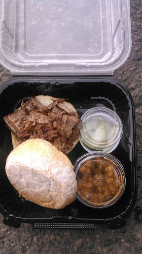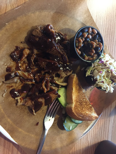 A out-of-town coworker was in town and we headed here for dinner after work. We came in around 6:45, which is close to closing (but didnt know it). The man at the counter told us some things like ribs and hot links were not available due to the grill being cleaned. No big deal. We ordered and got the food. The brisket was pretty good, but the chicken was the star of the show. tender, juicy and flavorful. The pulled pork was merely OK. Sides were all excellent and delicious. My coworker and I hung out and chatted, ate slowly, etc. Not once were we given the stink-eye because it was after closing. We were treated like real guests and had a pleasant meal. The food was good, but not out of the world. Prices are decent enough, and the sides are worth it.