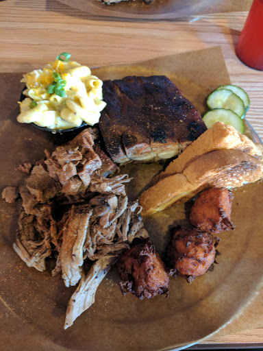 The beef burnt ends are great! As are the sweet potato tots and hush puppies. The roll my sandwich came on however was stale and hard as a rock.... Atmosphere is relaxed and comfortable. They also have some good local beer options by the can/bottle.