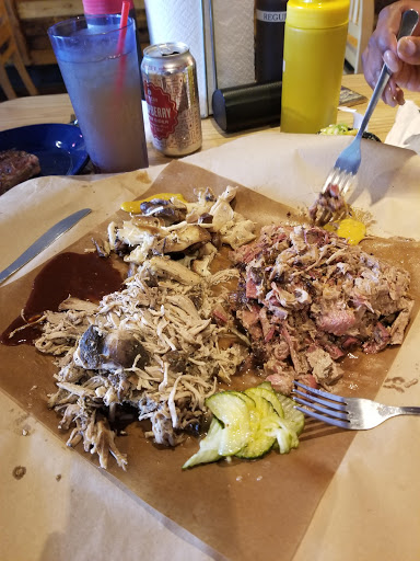 Not the best bbq Ive ever had but pretty good. Had the brisket and chicken with hush puppies and beans. The hush puppies and brisket were cooked perfectly. The chicken was dry but had good flavor. Would eat here again.