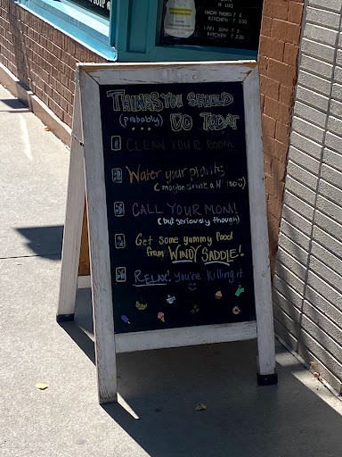 Ive enjoyed numerous visits to the Windy Saddle. I like the place so much I wrote a lullaby song for kids using their name. And I played it live at the Windy Saddle 3 weekends around Christmas in 2012...but thats another story. I enjoy their Americano coffees, Buckaroo wrap, and gluten free pastries. And theyre right under the welcome arch in the heart of downtown Golden. Like an old commercial used to say "it dont get no better than that".