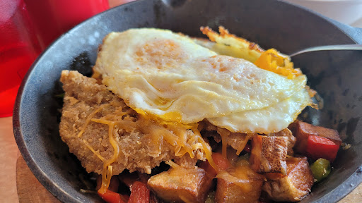 Our waitress was great but food was disappointing by far and not worth price. A beer with clamato constitutes a mixed drink, which was stupid as hell. I ordered a medium rare steak and it was well done and dry to the bone!. My fruit bowl was filled a 1/4 of the bowl too. My husbands waffle was super dry. The new steak came out ok but I can pay fry steak at home with that quality of steak too. I had to use a butter knife at butters too, didnt know I was part of a pun there. Very very disappointing.