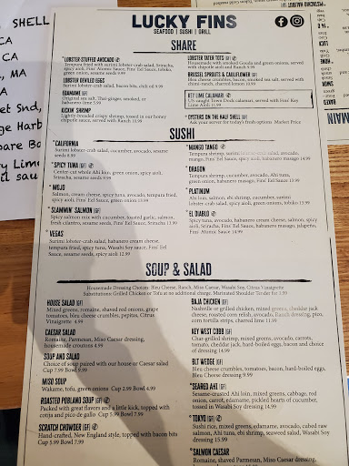 I love this place! They have fresh seafood which is very rare, the sushi rolls are phenomenal, seafood mac & cheese, both salmons are delicious, clam chowder, blondie martini, and my list goes on forever. The chef is amazing and creative which isnt something you see very often. I wish we had more restaurants that were not mass chains. The waiters/watresses are very friendly and I love the (my kids love the) open flame fireplace. Also the art is beautiful and they have jellyfish lights. By far my favorite place!