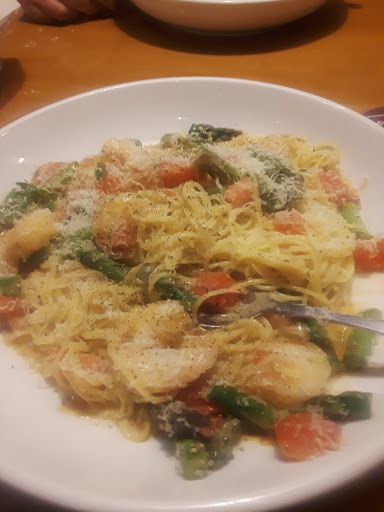 Food was dry. My aunt ordered the steak garganola. Her state was extremely tough. We asked that they take the steak and bring her shrimp since it was so tough. Took 20 minutes to get the shrimp. The waitress charged her $4.00 and didnt even tell her. She didnt realize until we got home. My daughter had the chicken Alfredo and there was very little sauce. Very dry. I had the chicken scampi which for the most part was good. My husband had the lasanza which he said was fair. Bread sticks were plain. Couldnt taste butter or garlic on them. Over all I would chose a different restaurant.