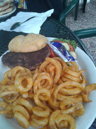 Quaint, old school, relaxed, charming, old style, small town, good food. I really like the place. And I only had lunch, a burger with fries. Ill give you the good and not so good. Good. Great location, old building charm, like a diner or ice cream parlor of yesteryear atmosphere. Good waitresses. Outdoor and indoor seating. Nice customers in good moods. Excellent French fries. I got the curly fries. Pretty good burger. It needed a bit more tenderness and juices to be better.