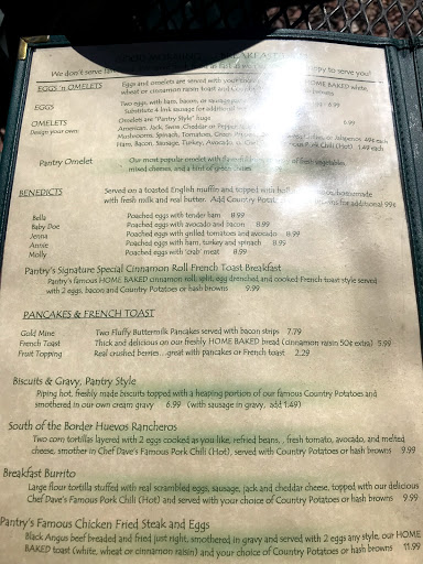 We were really excited about this place! We were in town for the veterans rally and wanted a relaxing breakfast. The reviews online were good so we came to try it. We were seated quickly and our waitresses took our drink order, water and bloody marys. We got the bloody marys and she took our food order. 45 minutes later, thats all weve seen of her... I went back in to ask for some coffee, was told they would send her out. We waited 10 minutes with nothing. Extremely disappointed in our experience. We wanted to be able to recommend a local spot for everyone we ride with, but unfortunately, we cant recommend The Pantry.