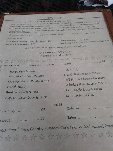 Quaint little mountain restaurant, but they are in serious need of a reevaluation of customer service! ! Was in there 2 months ago for breakfast. Two people. It took an hour and a half to be served COLD food. Frozen, cheap hash browns, the orange juice was so watered down, I did mention it. (They took the charge off my bill). There is NO reason ANYONE should ever wait that long for breakfast. They werent even busy inside. The server never said you will have a l-o-n-g wait time. I could have made our breakfast plus the other 3 families waiting for their food in 30 minutes, and peeled and shredded REAL potatoes. I will not return, unless I am the chef.