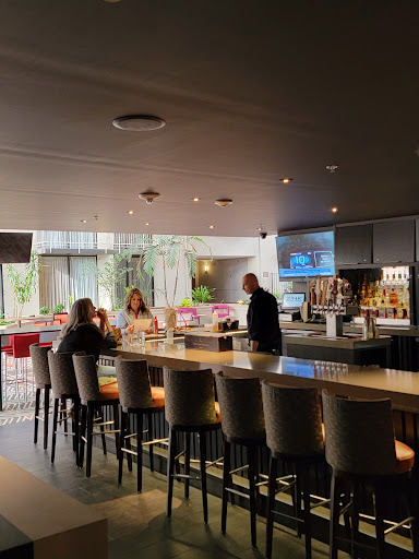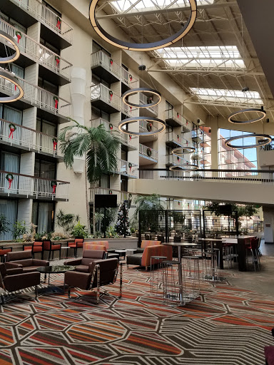 The Bar was well stocked and the staff attentive and helpful. The restaurant had a great breakfast buffet and omlet bar that included with my room at the hotel. I ate dinner here one night and the food was good and a decent value for the cost. Only real complaint I have is that while the bar was visible from outside the restaurant, to get to the seating area of the bar you had to walk through the entire restaurant which just seemed awkward, so Id look into making an opening to the bar area from the hotel atrium.