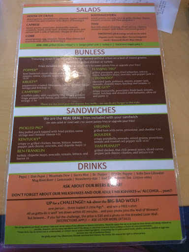 I walked into the sleek front room at Crave Burger and took a seat at a brown leather bench seat and soaked in the natural light reflecting off of the orange walls. It didn’t feel like I had just walked into any typical burger and shake diner. I knew I was in for a unique burger experience that was modern and innovative; changing how burgers and milkshakes are eaten. My waiter greeted me, clad in a bright orange t-shirt branded with their infamous Luther burger; a cheeseburger smashed between two glazed donuts. This burger really intimidated me! There was no way I was going to eat something so artery-clogging, so instead I ordered Love Stinks. The burger was delivered to my table with a swiftness, stacked with several gourmet ingredients including: “garlic cream cheese, garlic mayo, more sauteed garlic, roasted red peppers, crispy onion strings, and candied bacon.” (Crave Menu) All of these unique ingredients were carefully layered onto a certified Colorado Proud beef patty and smothered in red aioli sauce. Although all of that garlic was a little overwhelming, I still thoroughly enjoyed my meal. The smooth chewy texture of the peppers paired wonderfully with the crispy onion; and the salted, savory collection of garlic-esque ingredients balanced in near perfection with the sweet candied bacon. Crave Burgers, “Love Stinks” rekindled my passion for their extreme showmanship and innovation when it comes to serving up burgers. I would give this dining experience a rating of 4 out of 5 stars.
