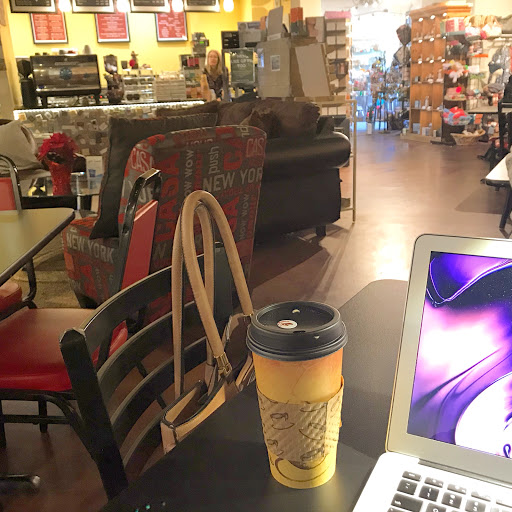 LOVE this place! Cozy atmosphere and yummy coffee (waaay better than Starbucks). They also have a large selection of teas, lemonades, smoothies and some light snack items (like muffins, scones & oatmeal). In addition to being a coffee shop theyre also a gift shop with jewelry, handbags, clothing, home decor... all sorts of cute stuff. The employees are always pleasant and the place is well kept and clean. I wish they had a coffee drive thru or outside delivery so I didnt have to haul my crazy kids in, then I could go more often!
