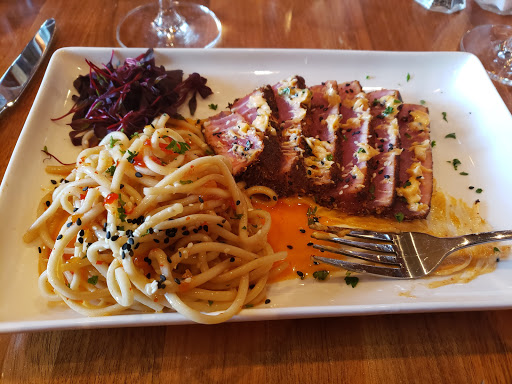 Although the place is very contemporary, it was not cozy or comfortable at all. I was not impressed with the food - our Asian Chicken Skewers were very dry and salty and the Italian Grilled Flatbread was similar to what I make my kids - pizza made with grocery store brand crust, sauce and cheese. It was disappointing to watch and hear the owners schmoozing with the regulars at the bar (which was right in front of our table) about their recent cruise. I didnt notice them talking to anyone else about how their dining experience was going. Dont think well be going back.