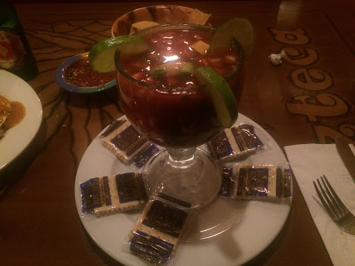 The margaritas were a little sweet for my tastes but potent. The salsa was good and the flavor of the ceviche was excellent. The picture made me laugh.