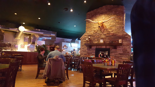 Loved the atmosphere here. Lovely fireplace and nice mounted longhorn above it. Our server was very nice but she got rather busy as our meal went on. Very very pricey. My husband had a steak which was very tender and well seasoned. $22 I had the shrimp. Five shrimp deep fried and a side salad for$16. Probably worth $10. Salad bar is $9 for all you can eat, and for that price I would expect a lot more items. Baked potato was not quite cooked all the way but the toppings were yummy, tho had to pay an extra dollar for cheese and bacon which at that price should just be included. Bring the prices down and I would be happy to come again.