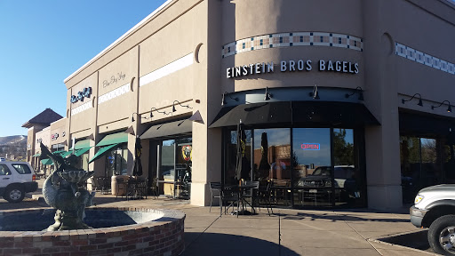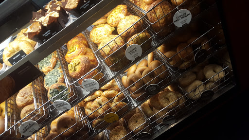 Einsteins is a bit hidden at the back of Chase bank, but it is worth navigating their parking lot to enjoy dense, chewy bagels and delightful shmears. Today, I sampled creamy, pumpkiny shmear on a pumpkin bagel (YUM!) and ordered an asparagus breakfast sandwich. Service was friendly and efficient--employees were cheerful. Thanks, Einstein Bros!